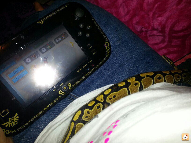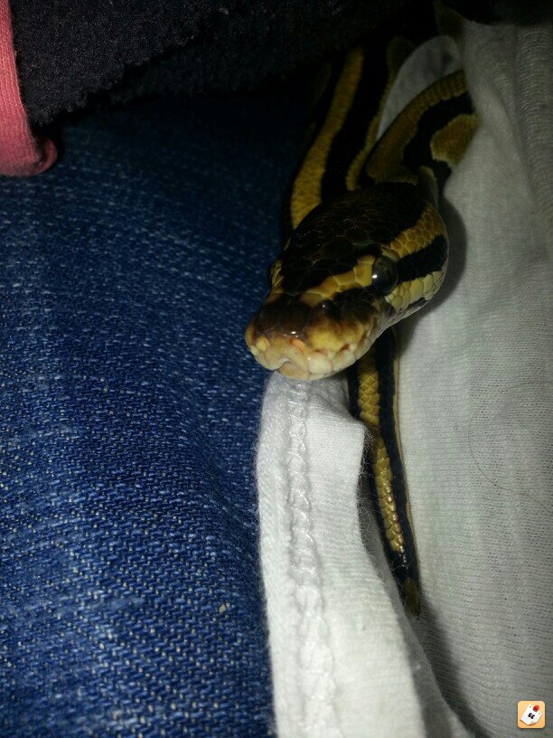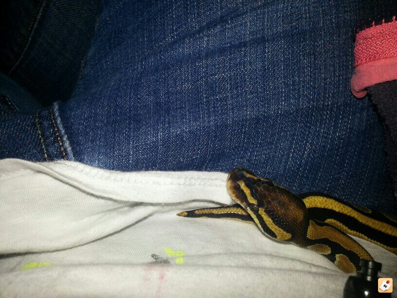 Normally when I have Tali out she's pretty curious and wants to see ALLL the things. I took her out earlier after having a bad day and way very suprised to find out that my snake had a cuddle bug. She sat curled up next to me with her head on my leg the whole time. I don't know if she was cold or just tired but she was being a sweet girl <3