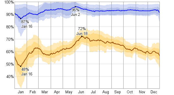 so I keep my tank at about 86-88 degrees hot side and humidity Avgs about 40-50When I at and get to keep it up,I keep it round 50-60. But most the times round 50-40