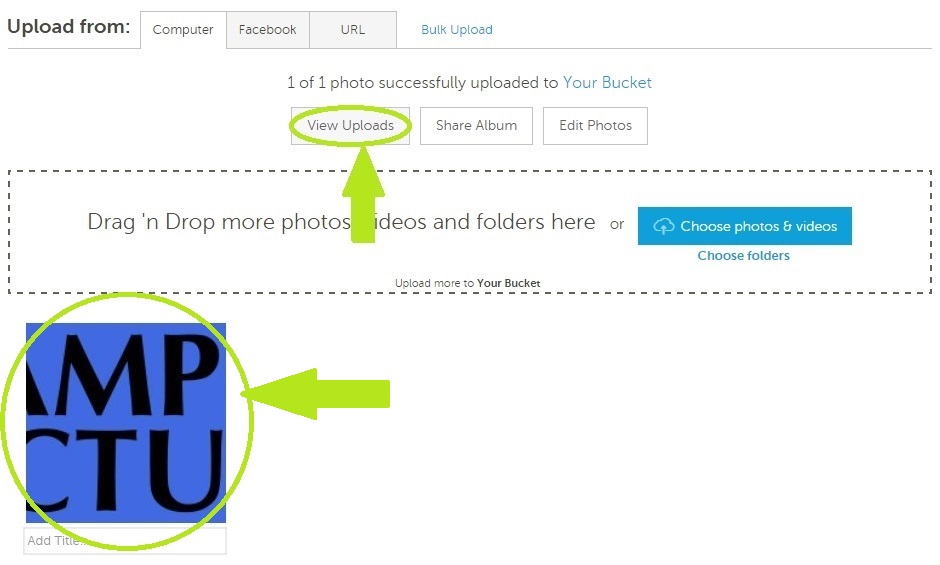 4. When your upload is complete, you will see a preview of your photo. From here, select the "View Uploads" button to continue: