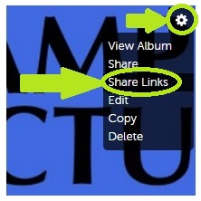 5. Hover your mouse at the top right (on the gear icon) of the photo you've uploaded that you'd like to share and select "Share Links" from the menu that appears: