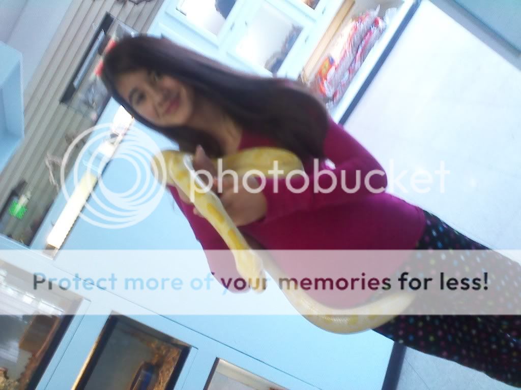 Oh here is a more recent photo, but instead I'm handling an albino Burm at a reptile store. My friend and mom wanted to take a photo with me and the snake >.<..