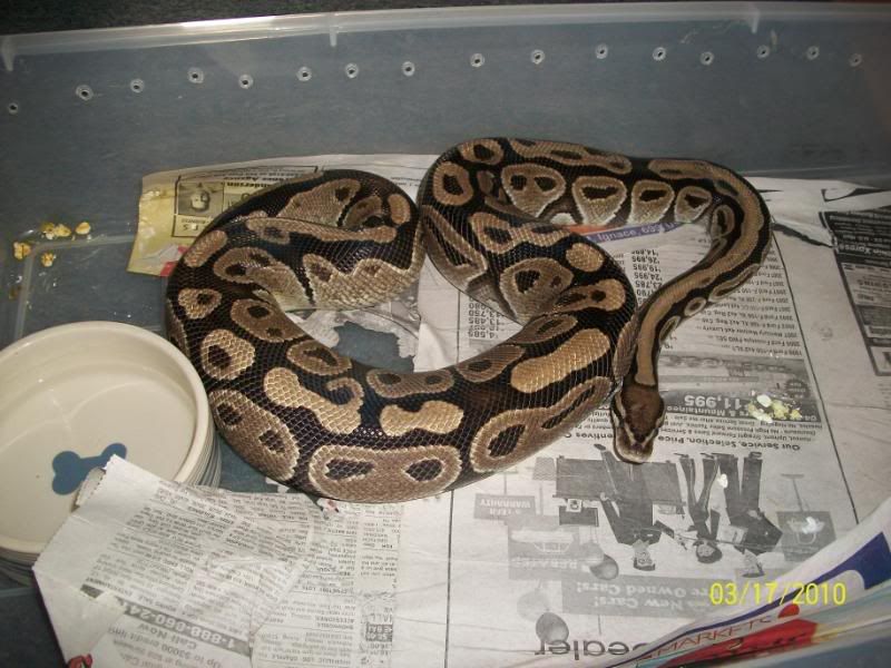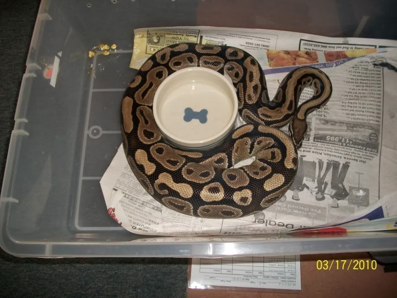 Either way, I love the little "dog bone/hook" pattern on her back. It could be an ovy but her behaviors in the pics kinda leads me to say no. From my experiences when building they will have a tendency to wrap their water bowl, when ovulating they have more of a tendency to stretch out straight in the tub. That by no means says she is not ovulating, JMO. Really hard to tell sometimes by pics. I usually tell folks if you have to question it...it's probally not. Ovys are normally unmistakable. :)