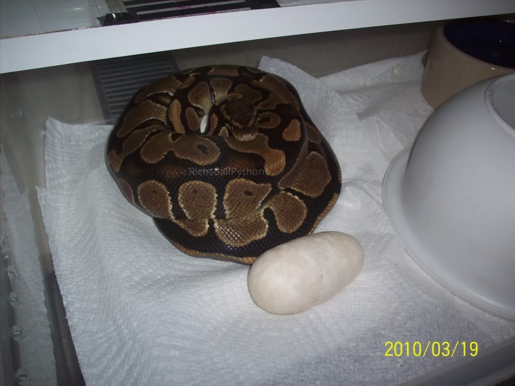 I cant wait to see what my other female lays. Shes 2800 grams when she went off feed back in dec. And just before ovy she was 3091g and laid 5 eggs back in 2008.