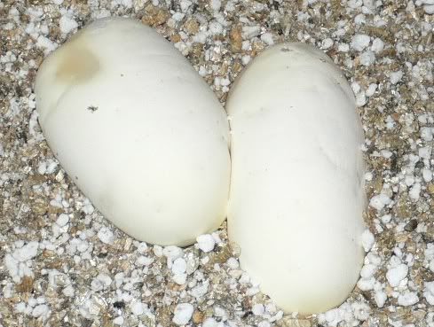 She had two big gorgeous ones with TONS of veins, and three slugs. Of course we were scrambling to get our incubator on and up to temperature at about midnight, lol. But we got the two eggs all settled, and they're due to hatch mid-April. The mojave, LaFleur, is the father, so we've got our fingers crossed!