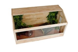The GEKO Timber Vivarium is a brand new design. The larger dimensions and unique design make this vivarium a superb habitat for most reptiles. The timber vivarium has a large window allowing clear viewing, plus two large air vents either side allowing a sufficient airflow. The vivarium is made from solid timber wood that has been finished in an animal friendly, water resistant varnish.