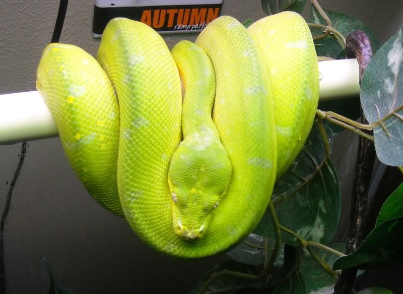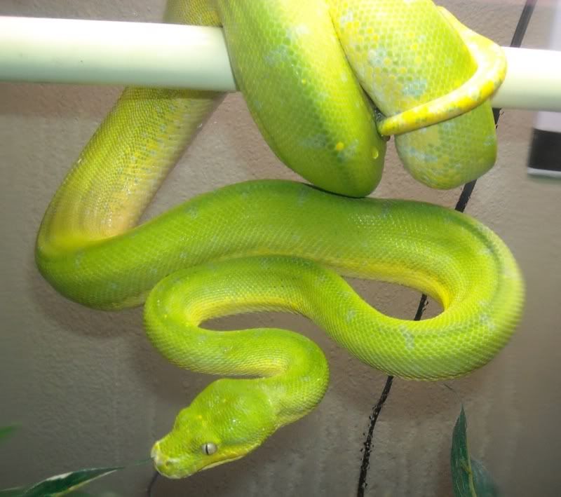 $600 plus shipping, proven breeder, outstanding appetite for rats, super lime green with nice yellows on the belly scales. Quite tame too for a GTP. Healthy in every way possible. I stand behind her 110%.