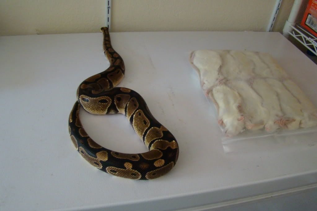 This ball python has been on rats for a year. However, these are larger than the ones she usually gets. She is a great feeder and is fed once or twice per month. She is not a breeder. I think she could handle these, but I thought I'd get some other opinions.