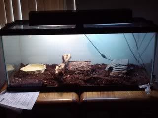 here is Scarlett's tank. it is 72 gal. with a locking screen top and a heating lamps (1 day, 1 night, and 1 uv). the sub strait is coconut husk (works well for moisture control) cover by duglus fur chips. Scarlett is about 4 ft. does she need anything else?