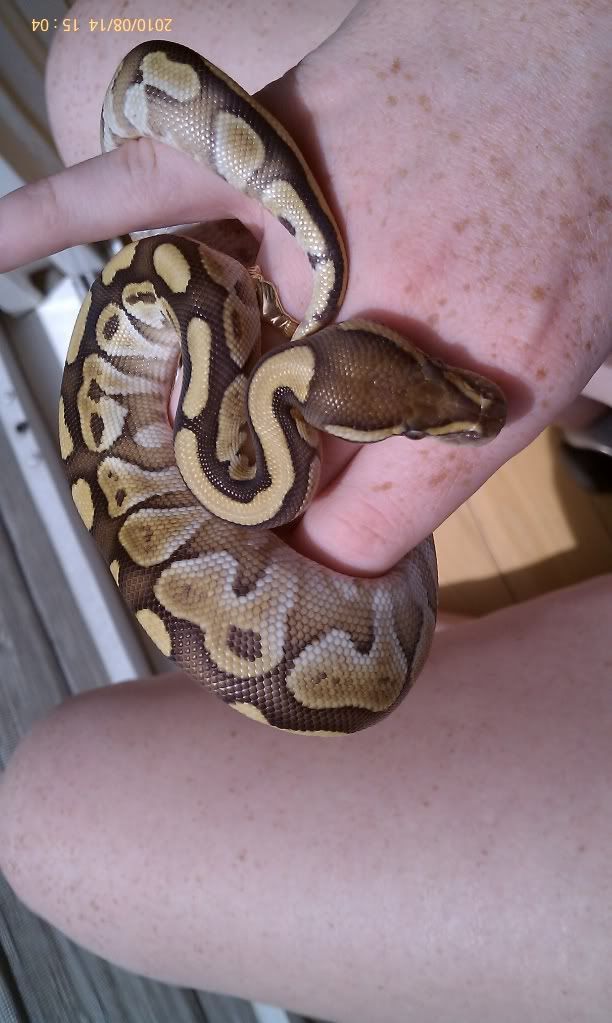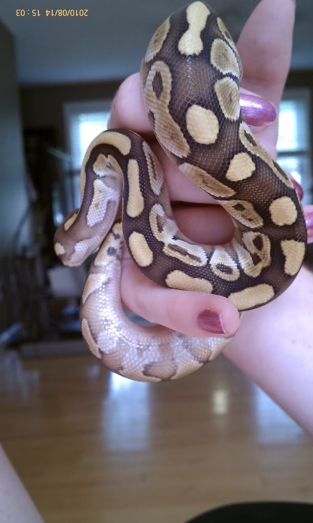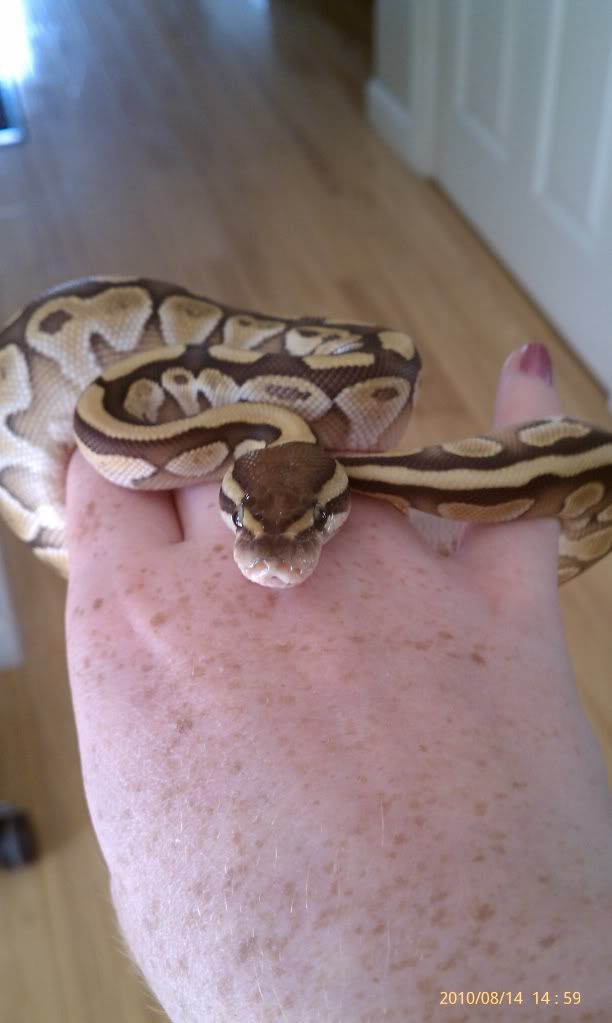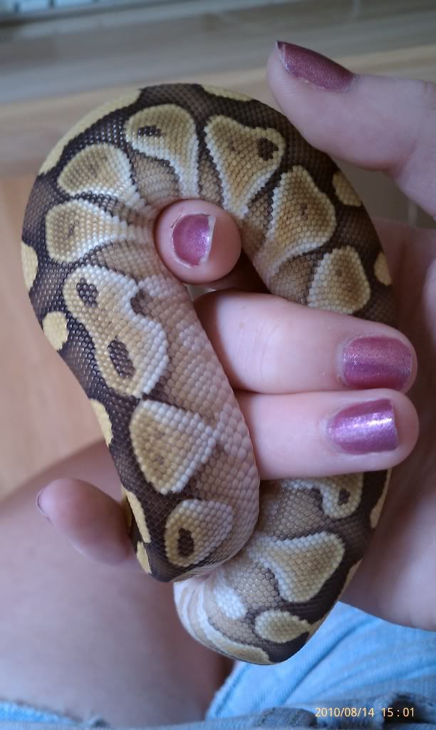 Finally got my little lesser I've been waiting for. I've had her for about two days so she hasn't eaten yet, hopefully I wont have problems when the time comes :please: She's 108 grams, female, and I was told she was a second generation Ralph Davis Lesser (meaning her grandfather is platty daddy). Tell me what you think!
