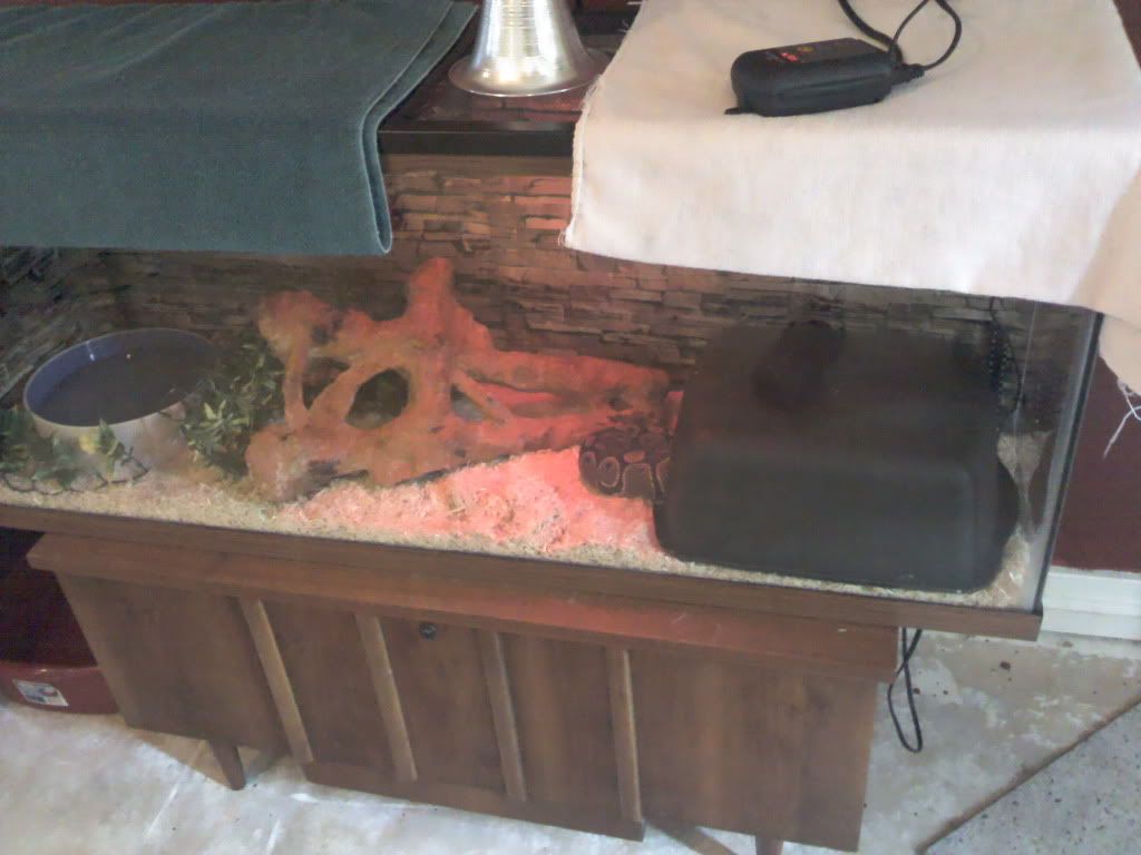 I have recently acquired 2 adult BPS, 1 pastel male and a normal female. They are a breeding pair. The guy i got them from gave me the 2 rubermail tubs that he keeps them in and also a 55 gallon glass tank that he also kept them in. He told me that he had kept them in the glass tank together before and had no problems and that i could do the same, but from what i am reading this is a no-no. Also, i keep my house pretty cold around 68-70 degrees. i have a undertank pad for each rubermaid and i am getting a therm for each tonight to just see what is going on in there. i have had them for 4 days now and they are pretty much staying coiled up above the heat pad. should i move them to the glass tank and add a heat lamp on the top to increase the ambient temp inside? any suggestions are welcomed as i am new to this.