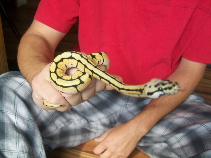 Here is our newest addition to the family...a one month old male bumblebee. This little guy will complete my collection (for now anyways) and will hopefully be a breeder in the future. He belongs to my 7 year old son so he named him Bumblebee, for his morph and because he is a big Transformers fan.
