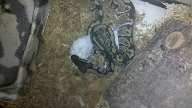 Anyway I fed him a regular mouse (it was the biggest mouse I could find at my pet store) yesterday morning, at like 10, and he killed it immediately then left it, and about 5 minutes later he finally started to eat it