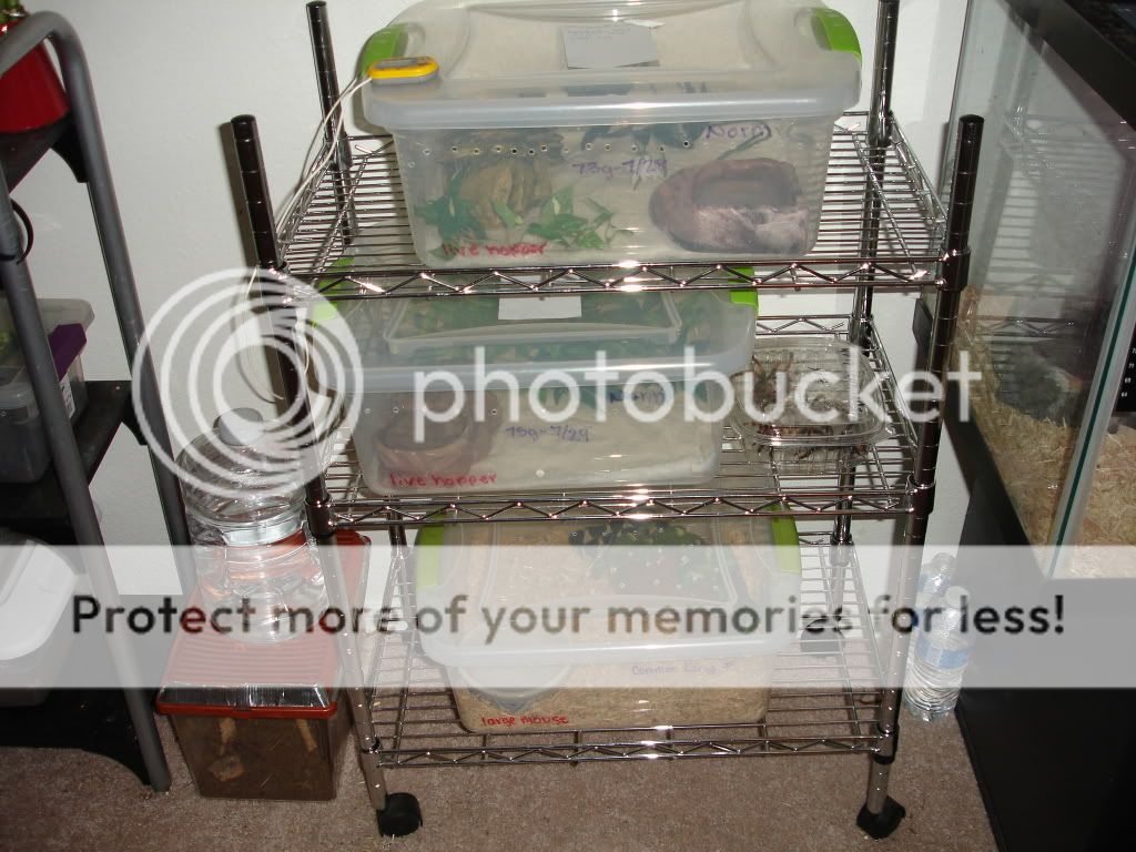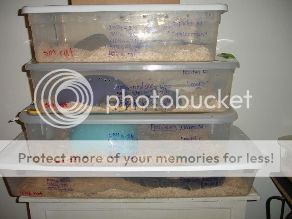 Very nice setup! I love the pic of your cal king in her shed!! I'm just curious though... I noticed you don't use any clips or straps on the sides of your tubs... have you ever had a problem with escapes or does it seem to hold them in pretty well? I'm just wondering because I use binder clips along the sides of mine and I'm still always paranoid that it isn't enough haha Are the "latching lids" only secure for snakes up to a certain size?