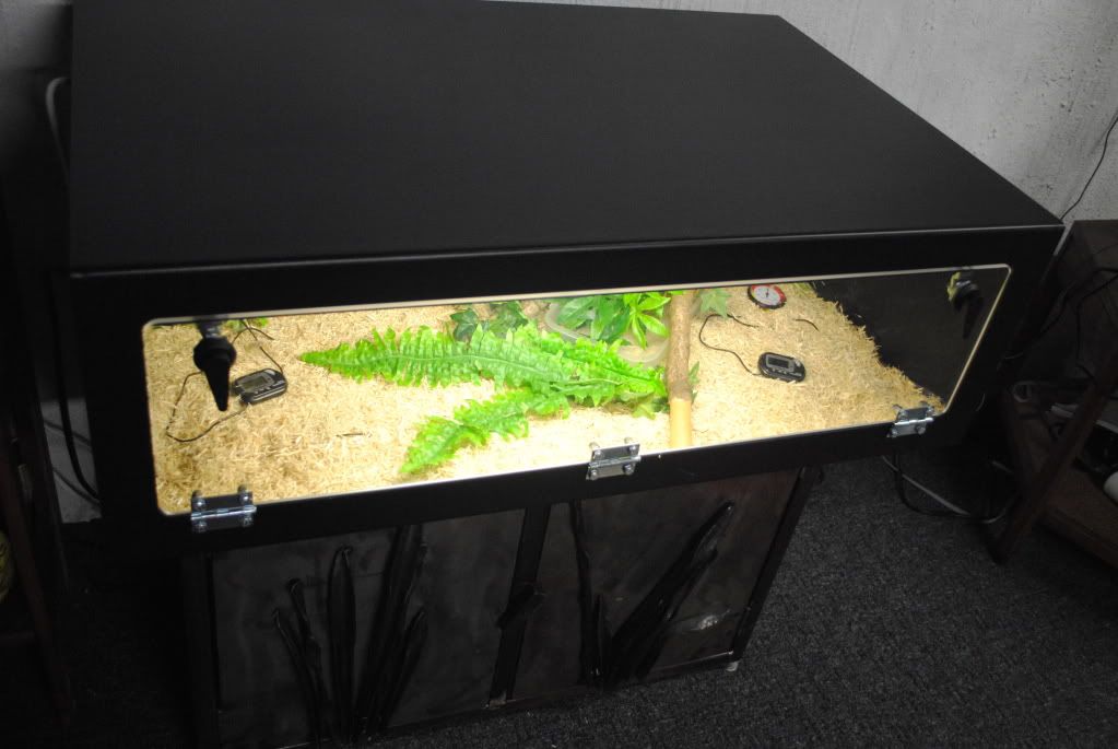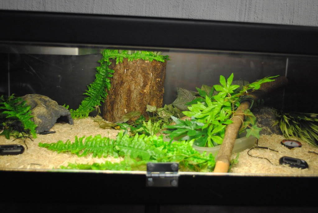 Hey everyone. So after waiting for 7 weeks my boaphile plastics tank finally came :D:D:D!!! I got a 321 D which is 36 X 24 X 12. I ordered with a built in light and radiant heat plannel for my only heat source. Everything is amazing. The temps are great and humidity even better. My warm side is 91 and cool 81.5. Im so happy!