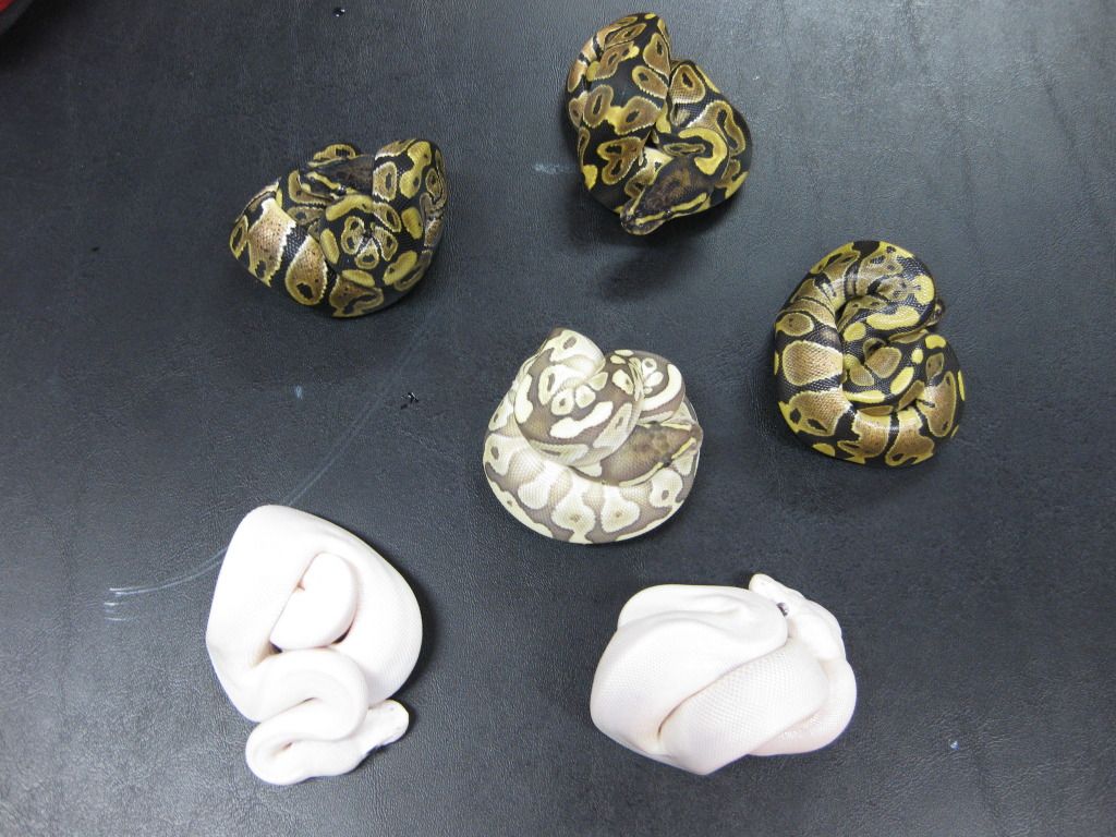 Clutch from Butter Daddy x Butter. Six eggs, only one Butter Daddy this year but two BEL Super Lessers ... all three males. And three normals, het for Platty. Still good looking group.
