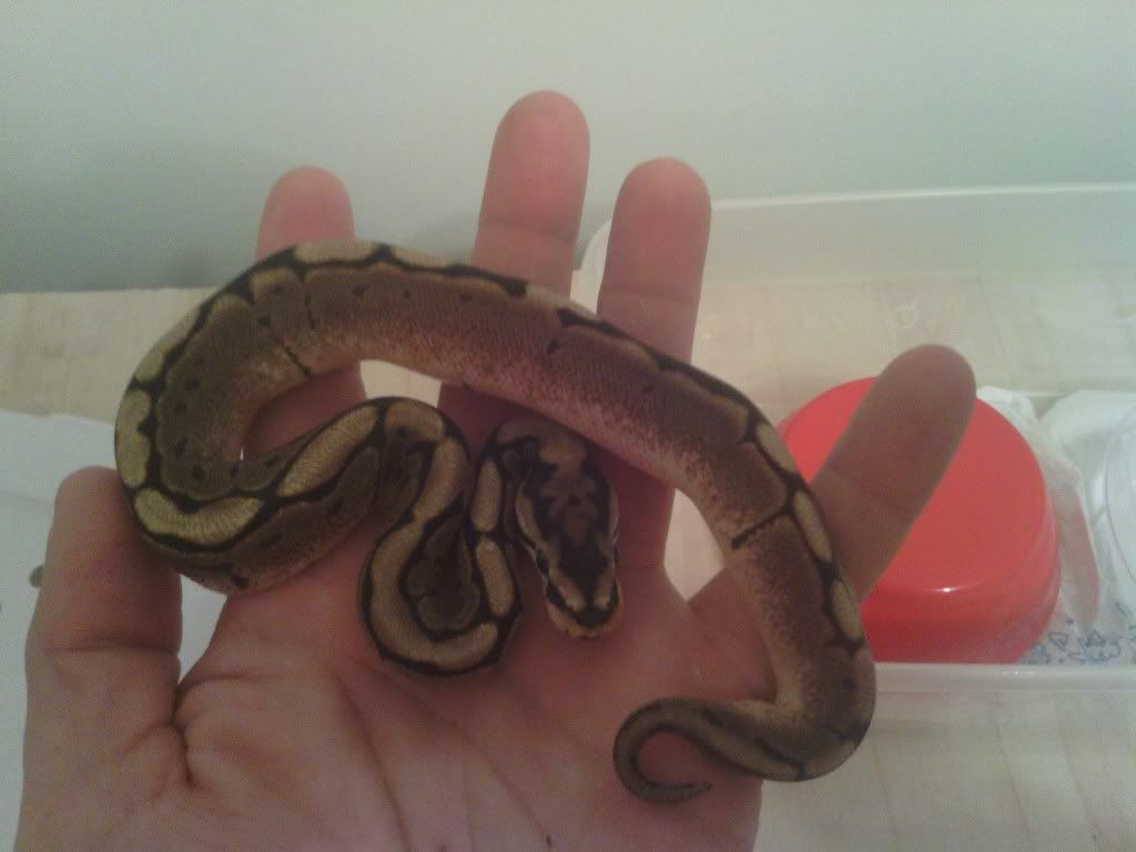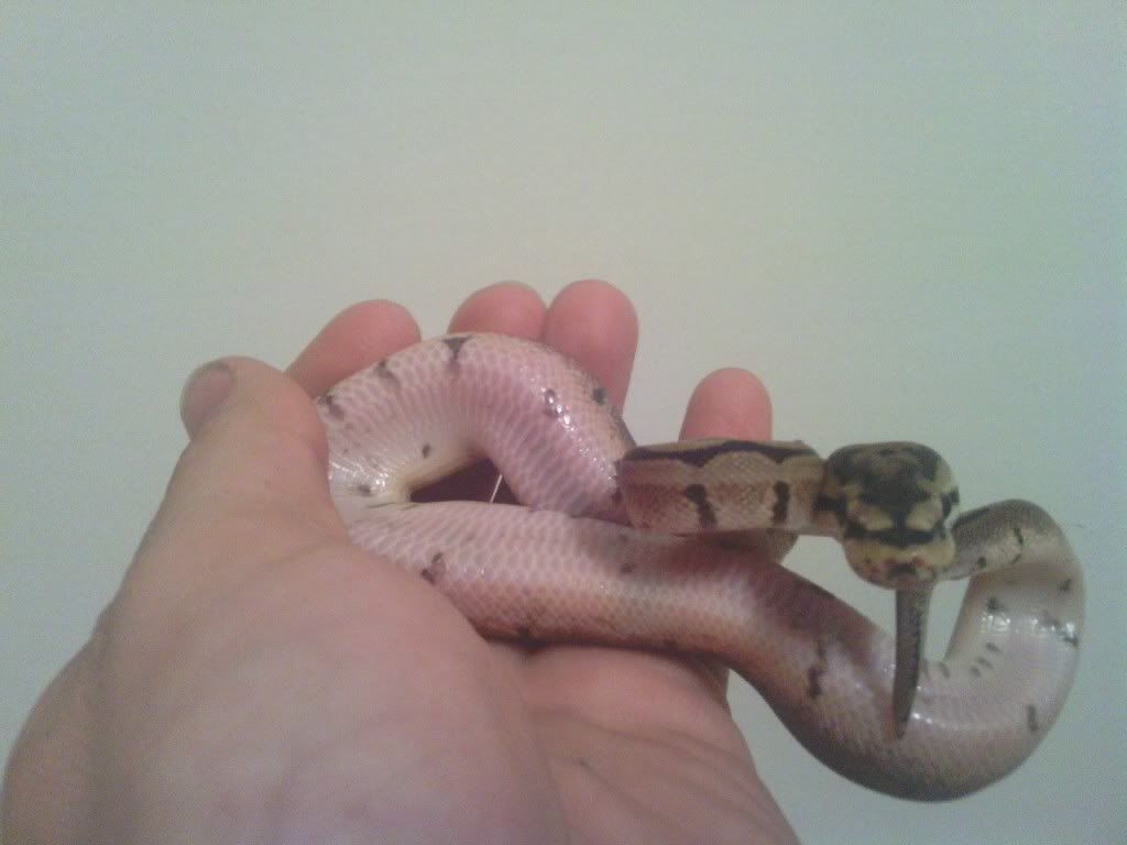 Just got this little guy at repticon this weekend from constriction addiction my second from Daniel and he is a great guy and great healthy animals and also he is right up the road from my place this little guy has a great reduced pattern but has little dots on his sides like a leopard spider but i know he is just a normal spider but has an awesome leaf pattern on his head