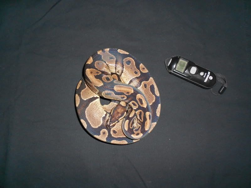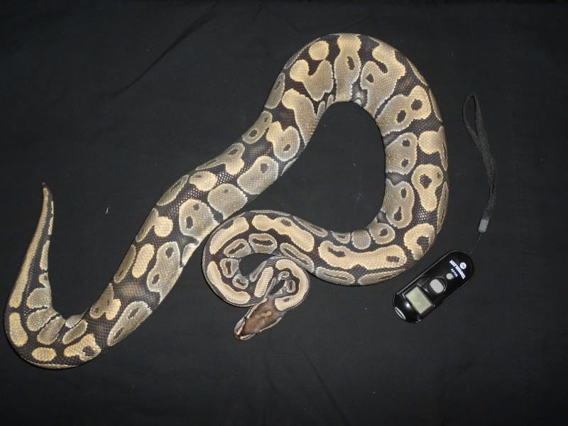F Poss Double Het Albino Pied 1480g- This is gonna be my most exciting clutch of the year If she goes for me, i bought this girl right out of the egg for 20$. Her dad was a double het albino pied and her mom was a poss het pied.
