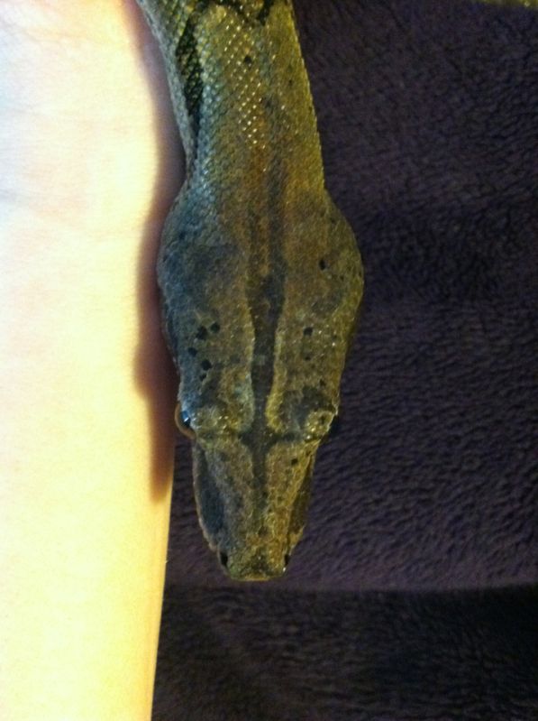 An acquaintance of mine sent me a message over facebook about a mystery boa they got from a pet store. From what I understand there's not much information on the snake, and as I don't work with boas I can't ID it for the life of me. I'm pretty sure it's not a BCC (I love their blocky/arrowhead shaped mugs), but that's about it. She told me it's stopped growing significantly right around 3.5 feet, but eating regularly. Here are the pics I have to work with