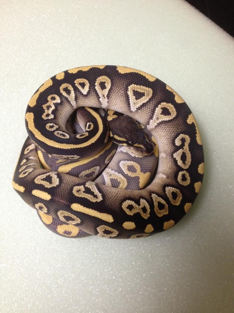 So, first off, I went to the ETHS this year hoping to find a high white sugar to raise up and pair with my pewter male. I was setting myself up for disappointment as each table I went to was a miss. Alas, not today (shucks) however I did get a chance to talk to the breeder who sold me my first ever BP, a Pastel Female who I raised up from a hatchling into the 1300g momma she is today. She was paired to a Lesser Male and eggs are due in about a week and a half. Anyways, Ken McAlexander who run Ball Python Investments had quite the selection of mojaves and pieds and pastels and everything in between. He has been working heavily on the Fire VPI Axanthic projects and I would love to get into them! After looking through his selection I saw a pretty neat Hypo Mjoave Male that really called out to me, however I was disappointed that the only Hypo female he had was a Normal Hypo. (Drats! Was really hoping to have a second dom gene in there) So i looked around some more...