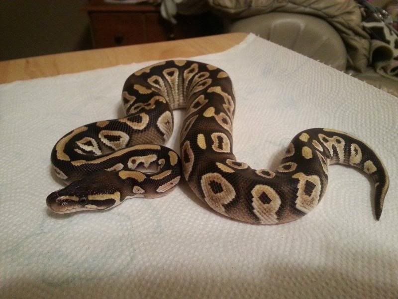 We've got 8 now. A bumble bee, cinnypin, yellow belly, and normal that are males. And a spider, fire, het albino, and now Mojave in females.