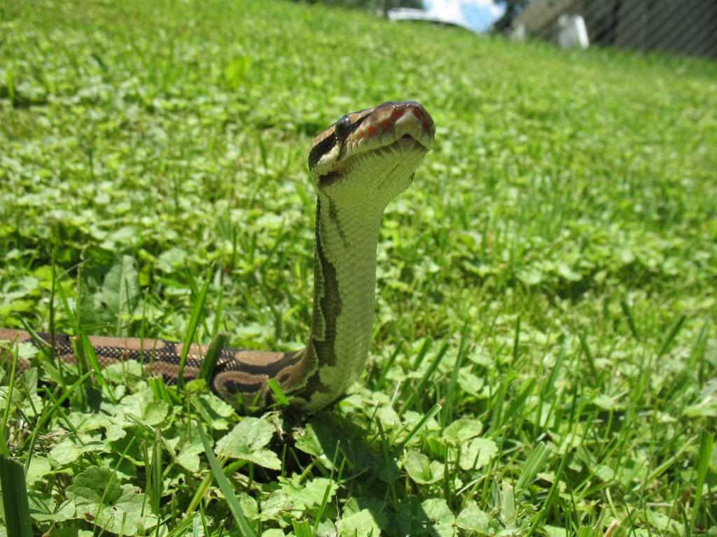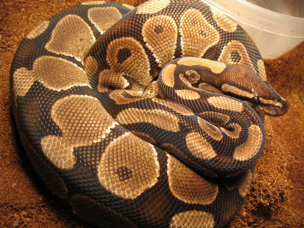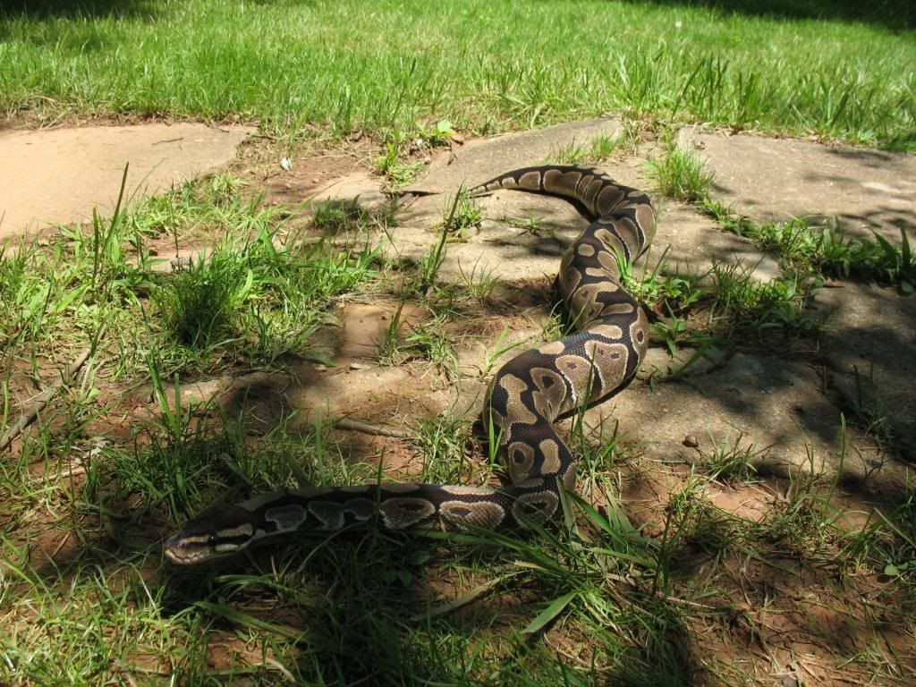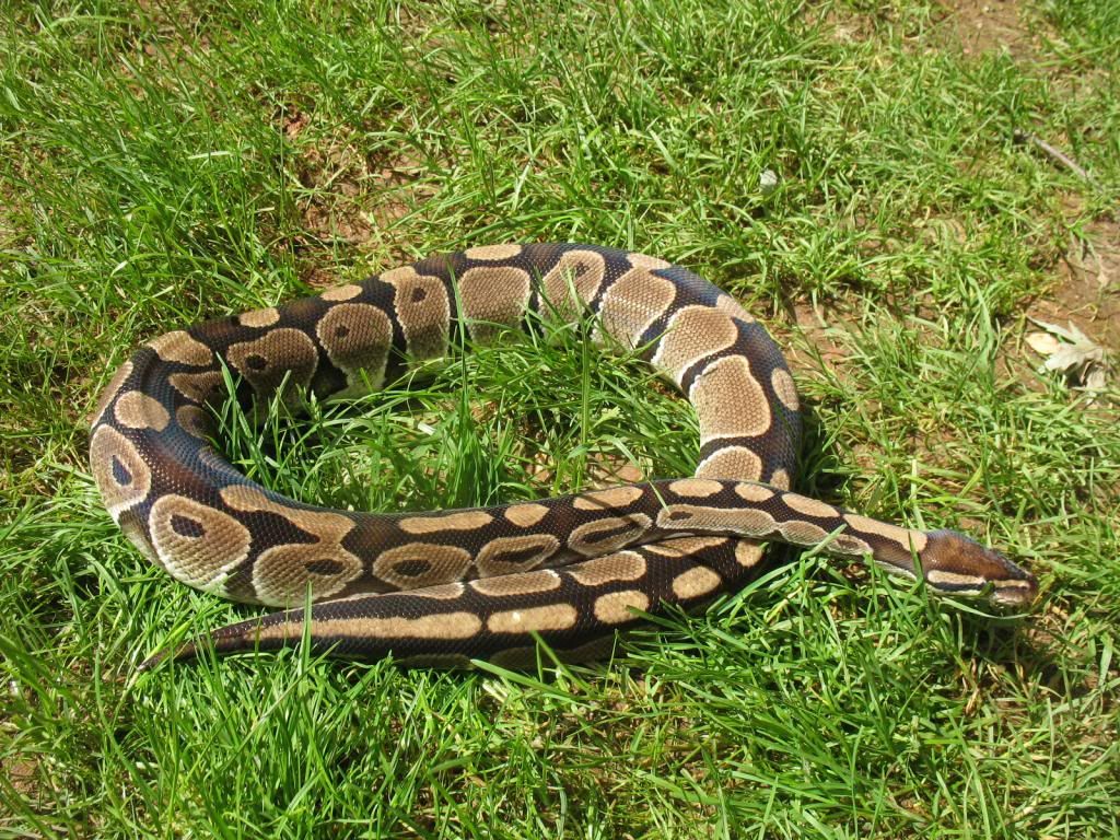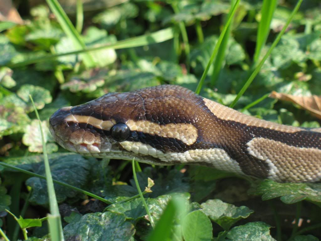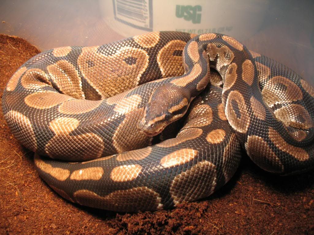 Bud is my 7 year old, 3.5ft ball python. I got Bud on September 23 2006, as my late 12th birthday present. Unfortunately, me being 12 and my father being ignorant on the care of animals, his care was less than satisfactory. Luckily, the physical problems were limited to bad sheds and winter fasts. Outside of the winter, he was a pig despite being so exposed in his enclosure and was probably a bit chubbier than he needed to be now that I know more about snake care. In 2011 I decided I wanted to get another snake, but I wanted to step up in size and get a slightly large snake. It was during my research on the care of boas (I was now almost 16 and so I was a bit smarter and figured I should probably research) that I decided to look at the care of ball pythons as well, because so far snake care in general was a whole lot different than what my father taught me when I got Bud. I very quickly implemented changes in his enclosure. Before, I had this treated wooden hide that had a heat lamp that was screwed to it, which was a major burn hazard. I took it off of the hide and lifted it to the top of enclosure, which was 3-3.5ft tall (I'm not sure of the measurements anymore as it's since been destroyed) so that he could not get to it. I was using ReptiBark, which didn't hold humidity good enough so I switched to EcoEarth. After just two sheds, his spotty scales went away (ones that looked dried out and stood out as white against the rest of his scales) and his discoloration went away to show this beautiful snake I never even knew existed. His first shed was still a little spotty, but his second one came off all in one piece including eye caps. I'd spent years gently rubbing stuck sheds off with a wet wash cloth and holding wet cloths to his eyes to gently remove stuck eye caps without any knowledge that snakes should shed whole pieces, so that I thought it was normal. Because of the extended period of bad sheds and poor humidity, a few of his scales (just one or two) have completely lost pigmentation and some of his scales are deformed, unfortunately. I'm lucky he didn't get an RI because other than one heat lamp, he had no other heating elements. I suppose this is thanks to our wood stove, which must have kept his enclosure just warm enough.