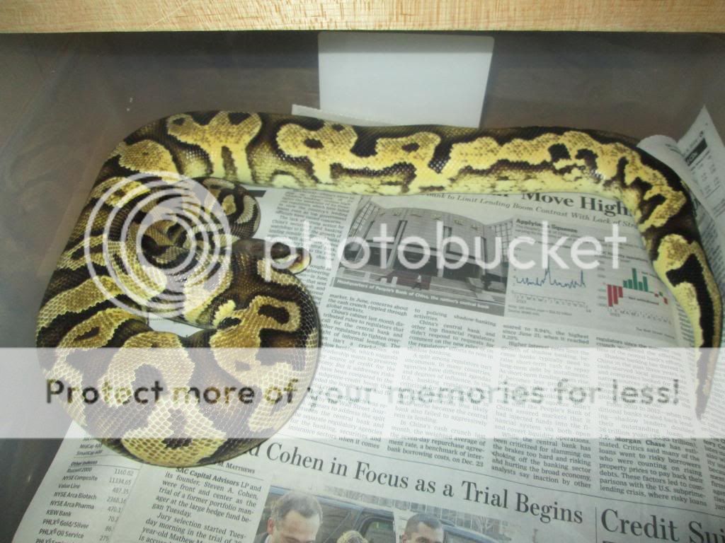 ok i got this girl from tom barnhart she is a pastel yellow belly. she is currently 980 grams. she has been off feed for the past few months. but when she is eating she is taking down small rats.