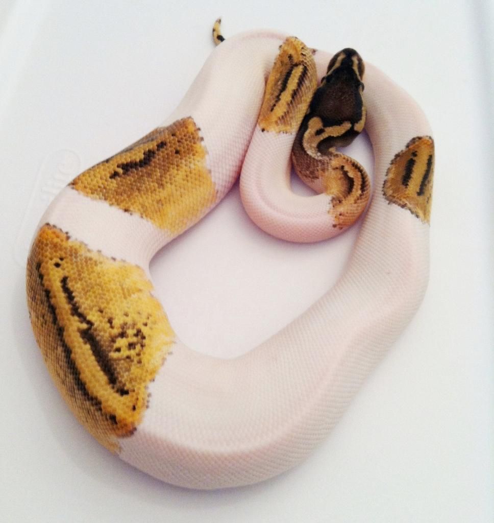 High white, super bright, and aggressively eating f/t rat pups with a crazy feeding response. He is extremely feisty and really fun to work with! Pastel Pieds don't get much better than this! He hatched in November of 2013 and is already over 140 grams. 100% perfect.