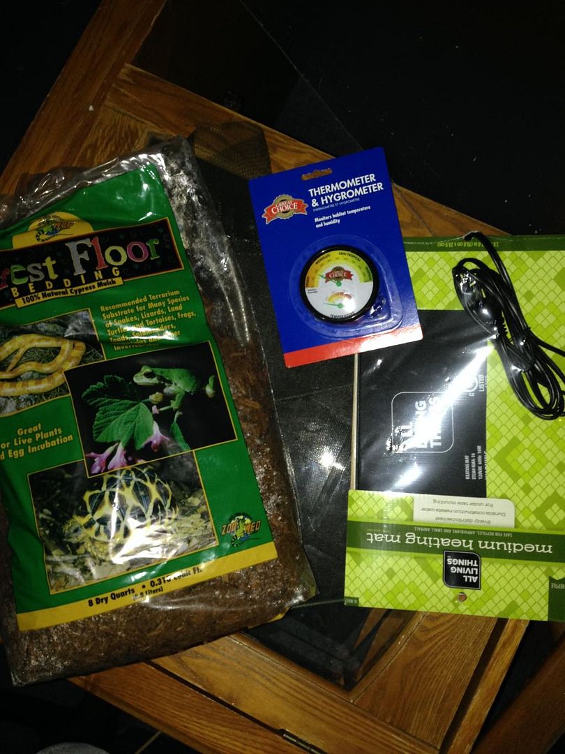 Looks good so far. Have you got a thermostat for that heat pad? Also, where are you planning to put the pad to heat the enclosure?