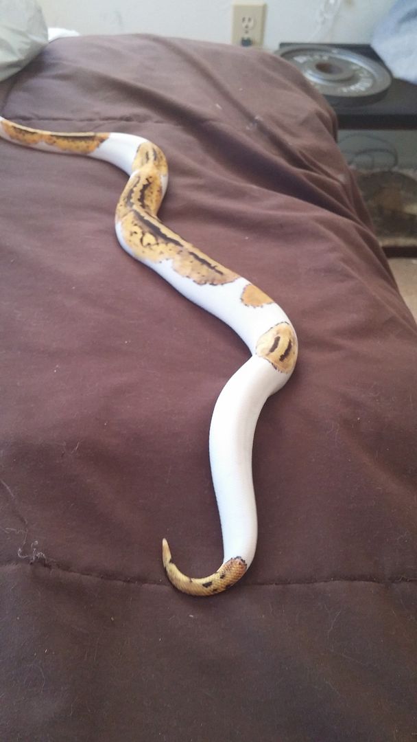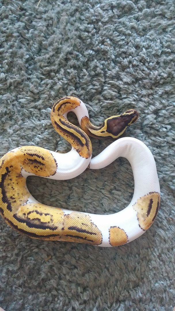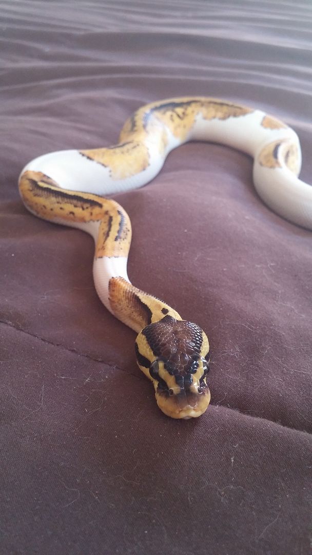 I'm hoping he does! This little girl should have no problem putting on weight, she's one of my best eaters! I'd like to get her a Yellowbelly 100% het pied male down the road if I can too and eventually she will see my banana spider for a banana pied project. The project I'm most excited about though is pairing her with my albino enchi spider male. Hold back a couple of nice hopefully enchi pastel hatchlings and eventually try for some albino pieds and enchi pieds