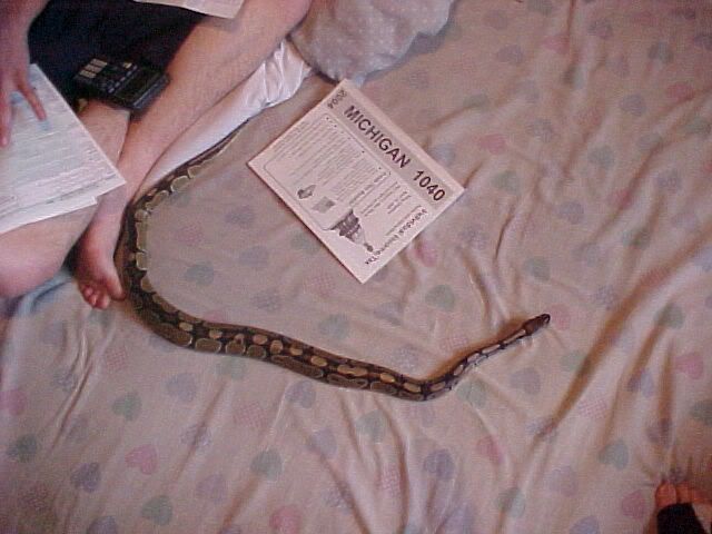 As most of you know, Pandora has been on an eating strike since November. She's only eaten one rat since then, and it was about 3 weeks ago. She won't touch it again and she's starting to look too skinny! I don't have a scale that measures in grams, so I don't know exactly how much weight she's lost. I also don't have any good before pictures, so this will have to do. For a snake that's 3.9 ft, does she look too skinny?
