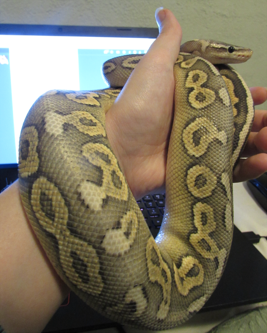 I see some of you were also at NWRE this weekend! We also went out there and came home with a new little boy. I've been thinking for a while that I needed to add ghost into my projects somewhere, but I new it had to come in the right combo. Apparently the right combo was a pewter ghost. Picked this little guy up from Priceless Pythons. He's TINY, only 69 grams, and apparently he and the boy next to him at the table were twins! He's my first male too. We've named him Riddle at my spouse's suggestion (because ghost snake).