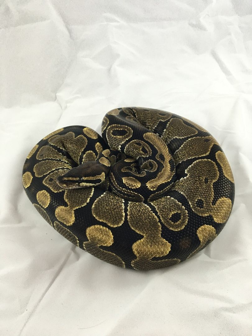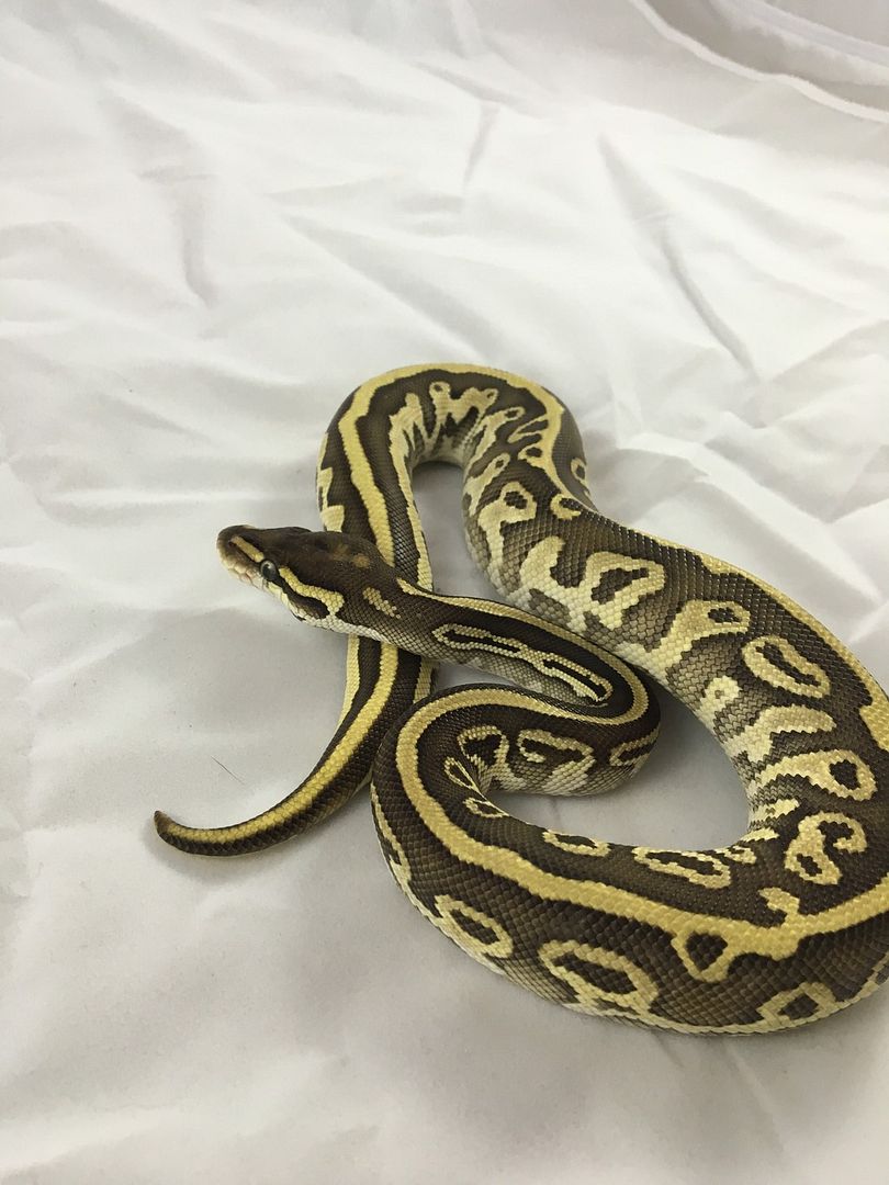 Introducing this beautiful creature! 0.1 Lesser leopard. When I first made the step into breeding ball pythons and really started studying different morphs and genetics, this was a combo that was high up on my list and this girl is just...stunning. Full dorsal strip and possible het pied to boot. Amazing eater and just an awesome snake to look at everyday. I can't wait to watch her grow, i really can't.