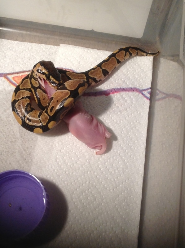 After two weeks she still didn't shed and I worried for her life, so I gave the smallest stuff what I had, and that was an 11g F/T pinky rat.