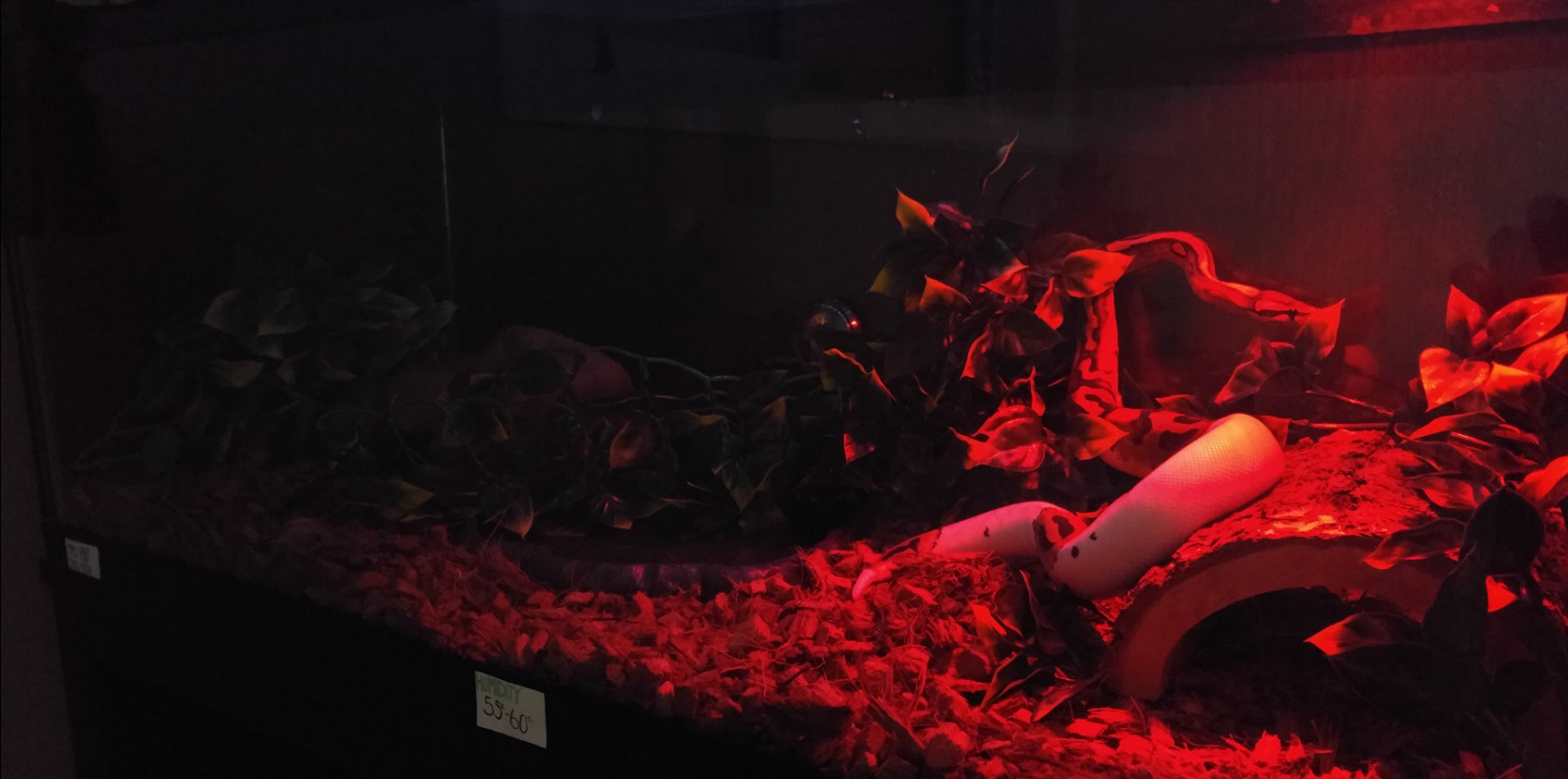 Another thing is that reptiles can see the red light and it does affect their circadian rhythm. Ideally, you'd want a UTH combined with a CHE (ceramic heat emitter) to provide heat in a glass tank, with no lights.