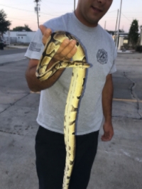 I work for the local Fire Department, and one of our stations went on a call for a lady who was losing her mind about the "Giant Boa" in her apartment. When I walk into work later that morning the first thing my supervisor says to me (knowing Im the "snake girl") is "Station 42 has a Boa, you should take it!"... Well, I was skeptical it was a Boa anyway, so I texted the station for pictures, and said that I wasn't interested if it was indeed a Boa, a Burm, or a Retic (not that Ive got the permits for the last 2 anyway), but if it happened to be a ball python (yeah, right), that Id consider it.... sure enough, pictures roll in and this is what I see...