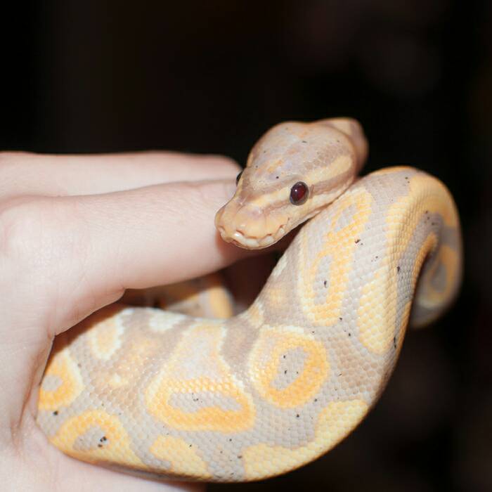 I'm new enough to ball pythons that I'm still learning new things everyday the last couple days I've been looking at the eyes of my new banana/ champagne and at first I thought they were black but the more I look at them they look more red. The pupils look/shine red and the outer part looks very dark red its hard to get a pic of but heres one I took and one I blew up from the breeder (blue background) this is probably normal but I thought it was interesting and thought I'd see what yall thought