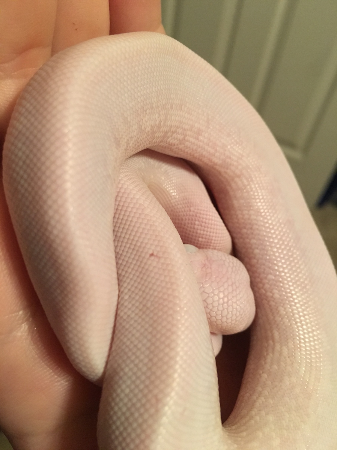 Today I fed Belle. Unfortunately, I got too many hopper mice last time I picked up feeders, so I had to feed her 2. First one went well, but the 2nd was able to bite her when she was constricting it. I was able to get it off her with the tongs before anything else could happen, but it did leave a small mark on her. It doesn't look like it broke the skin. Do you guys think it'll be unnoticeable once she sheds a couple times?