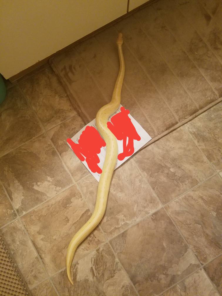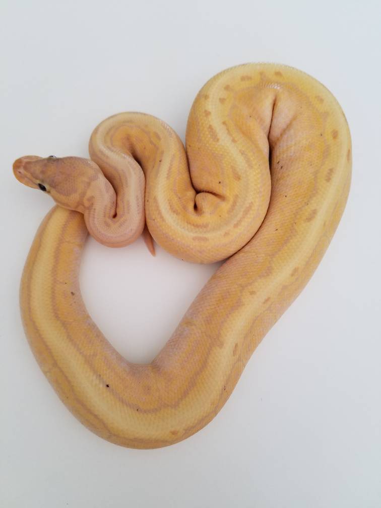 So i recently was given this guy, for free! A friend of a friend moved and had heard that i already have a good amount of snakes so they asked me to take him. He is a Banana Pinstripe, about 600g at 1.5 years, and has the coolest personality of any BP ive ever dealt with. His actions are more consistant with my boas than any other ball ive known. He came in a glass tnk and had some stuck shed, but i switched him to a tub and gave him a soak and he's all good!