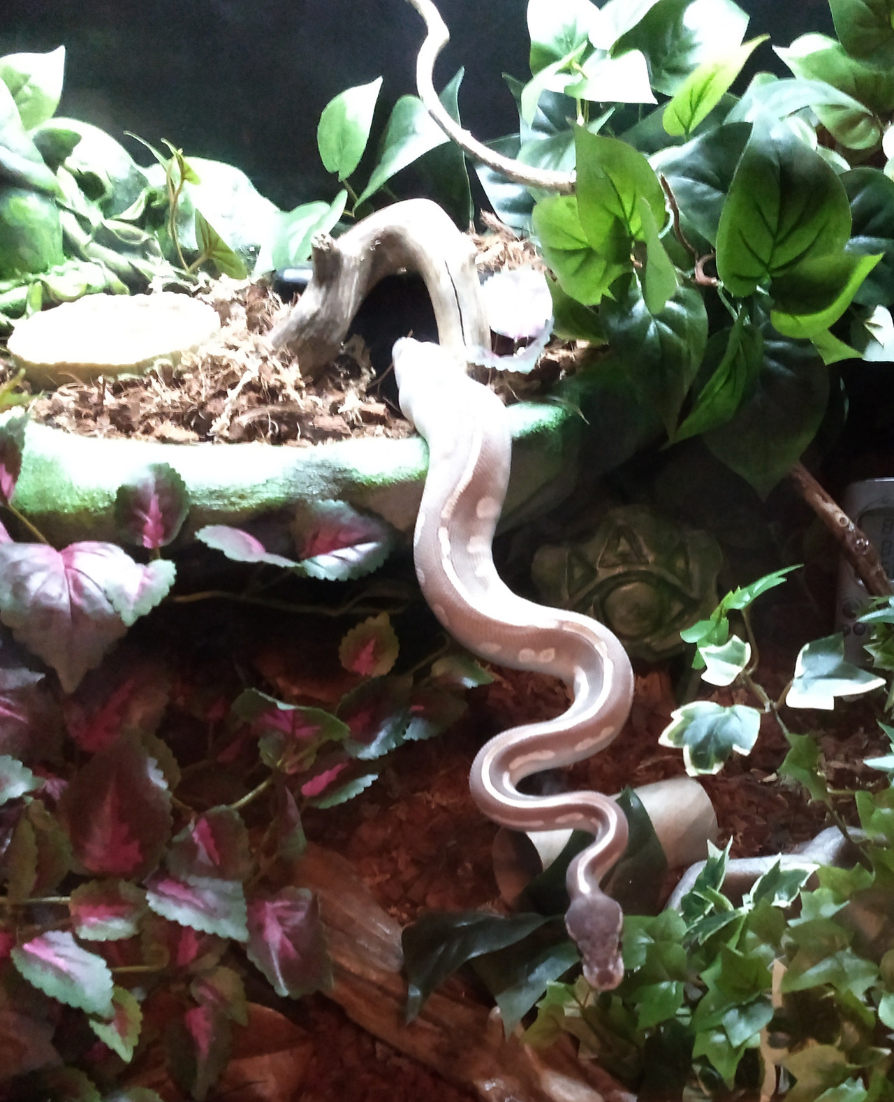 Pictures peeks out from under her log, kat eyes us through the tank, and cara eyes us from her hide. The second her nose is pointed our direction we know shes hungry.