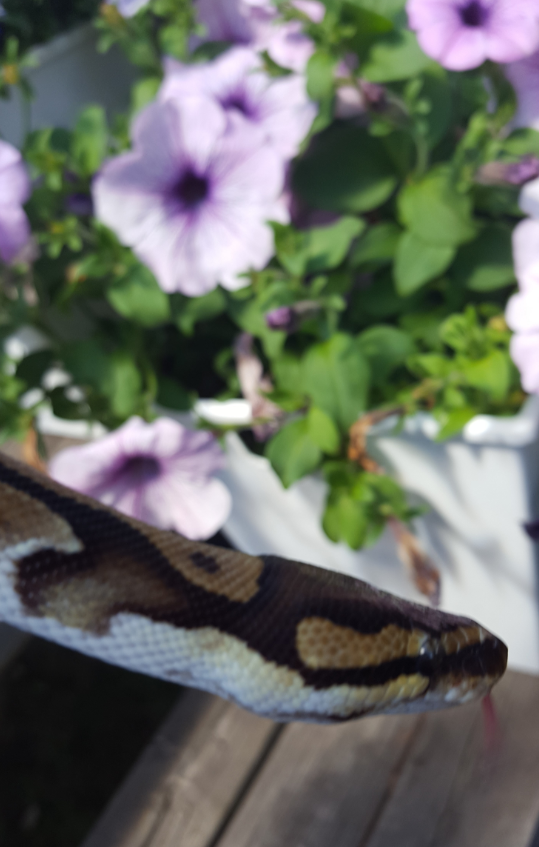I have a patio with a table and table umbrella and was wondering if you guys think it is warm enough to take her out to sit with me on the chairs? :snake: