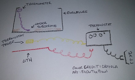 PLEASE REMOVE the thermostat probe from inside the enclose, as the snake can poop, pee or otherwise move the probe to create an inaccurate reading and cook your snake. OUTSIDE the enclosure between the UTH and enclosure bottom is the CORRECT placement.
