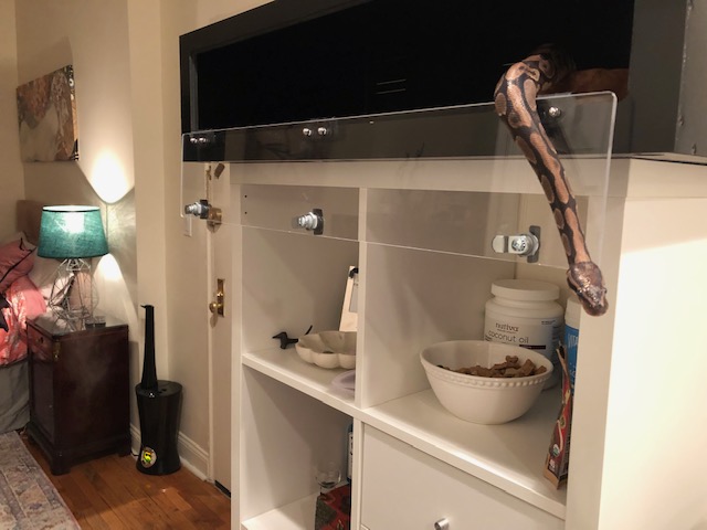 Anyway, the purpose of this post is because I want to make sure she's getting enough light through the clear plastic door and she doesn't need a taller enclosure. I read that BPs love dark small spaces so I wanted to recreate that to make her feel as comfortable as possible. I do keep the lights in my apartment on during the day for my other animals, but I'm wondering if she needs a light in there at all?