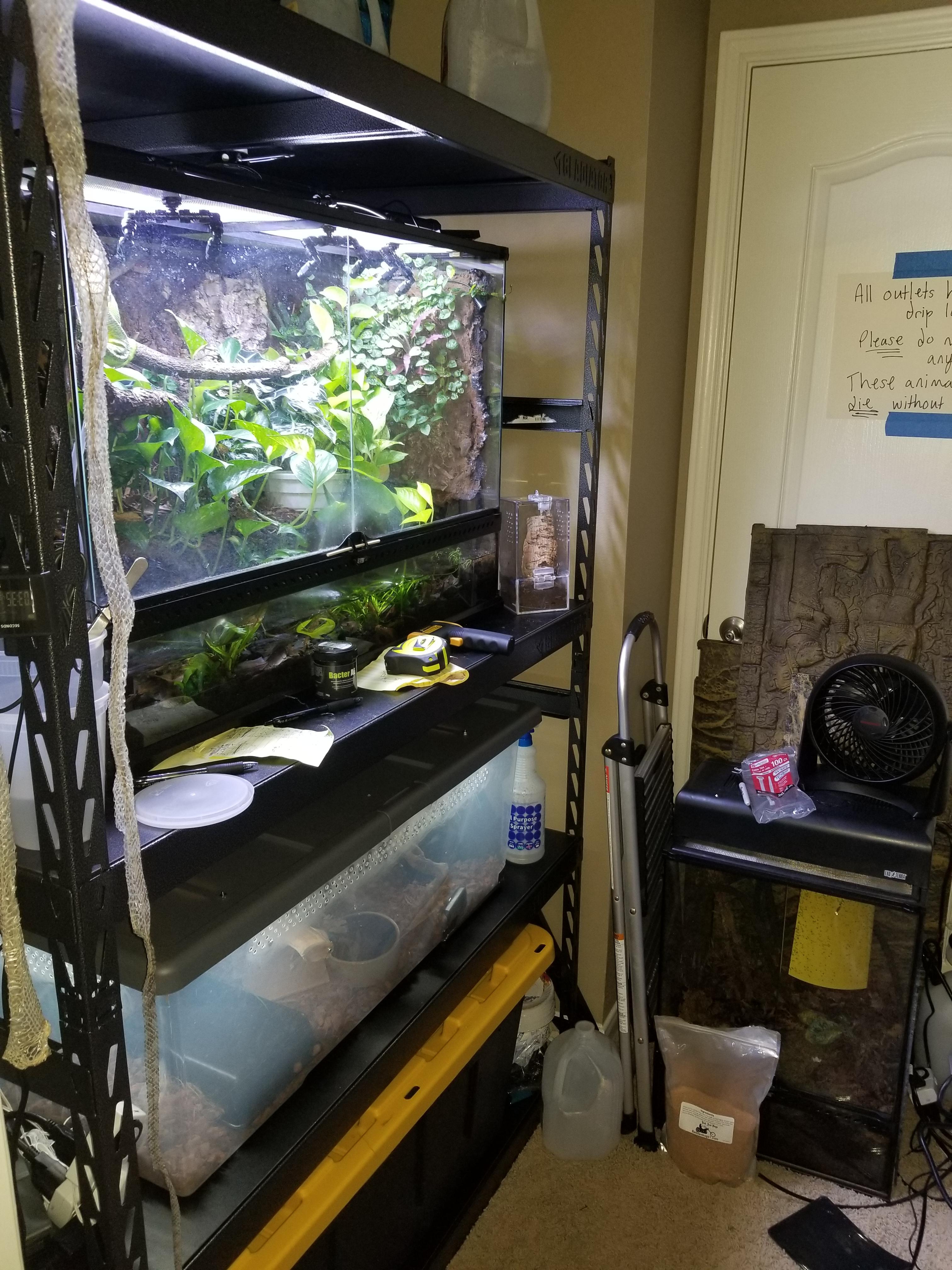 Right now my plans are to put the plywood enclosure and exo terra on top of it on the left side of the room, then the right side could be 5' long enclosures stacked on the right side, but I may want something that doesn't need 5' long. I almost scrapped the exoterra and plywood for uniform pvc enclosures to satisfy my OCD, but I am trying to be cost efficient too.