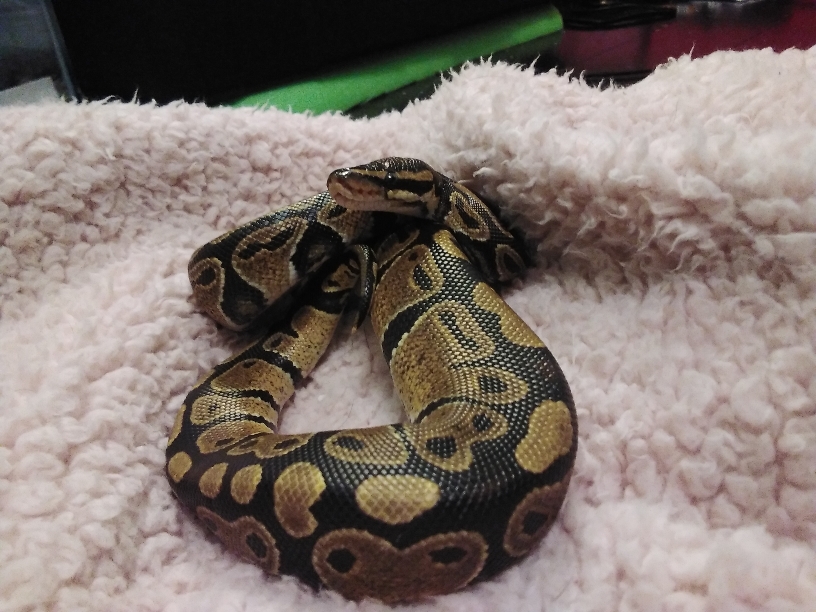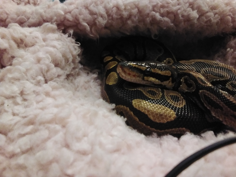 Some current photos! He getting his dose of snuggles, oh yeah, the last photo.... yeah thats dinner the rat pup! Beans decided he wasn't hungry, for a couple weeks straight.... so we contacted the breeder and they suggested getting a live rat pup instead, since thatis what he was raised with. So we did, and beans decided he wasn't hungry. NOW WE HAVE A TINY RAT LIVING IN A TANK IN MY ROOM. THANKS BEANS.https://ball-pythons.net/forums/cach...b3fac36937.jpghttps://ball-pythons.net/forums/cach...7b6a020568.jpghttps://ball-pythons.net/forums/cach...577fa50914.jpghttps://ball-pythons.net/forums/cach...b863b28896.jpg