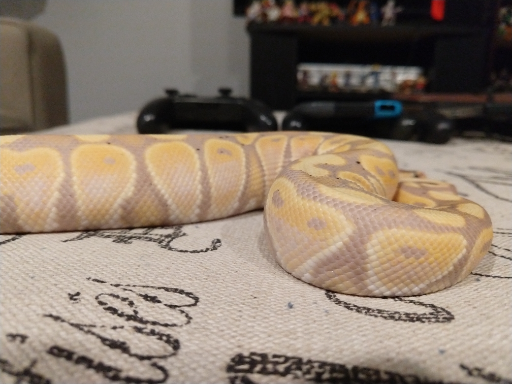 Anyway, this is Zebes, my nearly 8 month old male banana BP. He is named after the planet featured in the Metroid video game series (all snakes I have in the future will revolve around the naming scheme of fictional video game worlds). Not the first snake I've ever had as I've owned a corn snake some years ago, but it's been so long that he feels like my first. Couldn't have asked for a better start with him though, he's been a dream. Never bitten anybody, has been sporting a hearty appetite and been patient with me as I learn (or even relearn) all the ropes. Somewhere above 2 feet long and just getting started on rat pups, he's been growing steadily. To think he was able to fit in a deli cup when I got him last September.