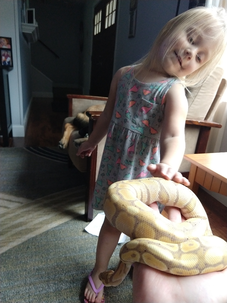 But this time today, she gave Zebes long, slow strokes with a big smile on her face, even outright saying "I like snakes!" while petting him. This is now the 5th younger relative that has grown to like snakes because of his ambassadorship. I couldn't be more proud of him. :love: