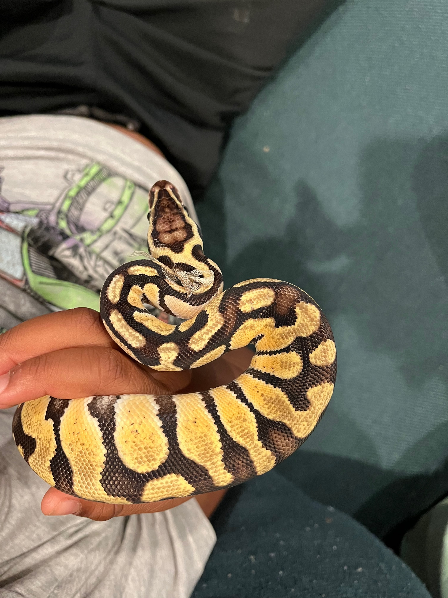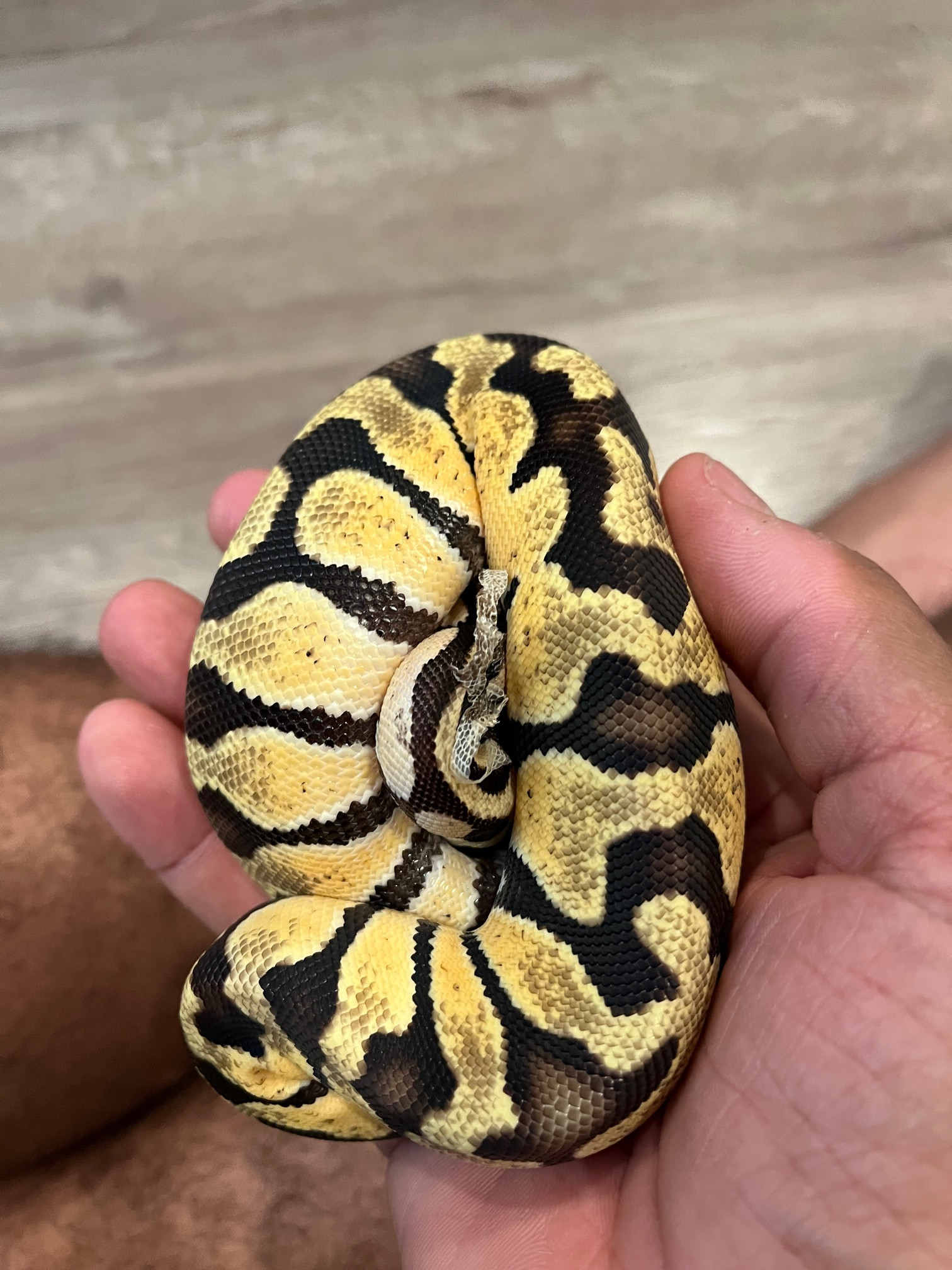 Pictures attached, including how much skin I've collectedhttps://ball-pythons.net/forums/cach...J/IMG-2343.jpg (sidenote, I had my son handle her a little just now for the longest he has and she uncurled on her own but then was in this striking pose, and actually tried to strike my other son who was moving his legs nearby. If they get in this position while handling, should I return them to their cage immediately or is it not a big deal?).