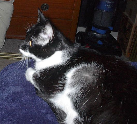 Our cat is completely wigged too. She has a great view of him exploring from the bed, and is very "OMG! WTF is that??" lol!