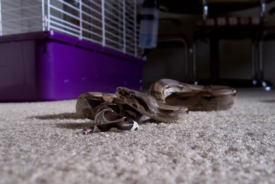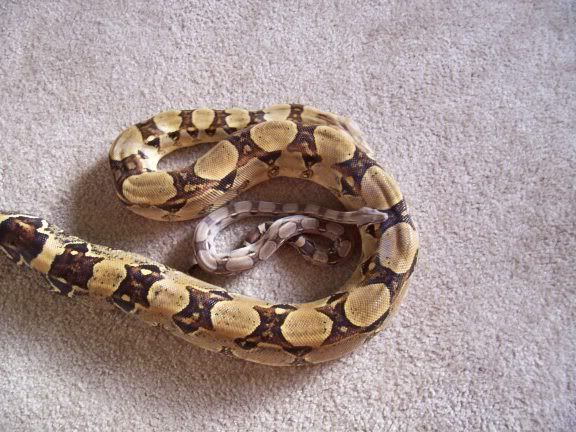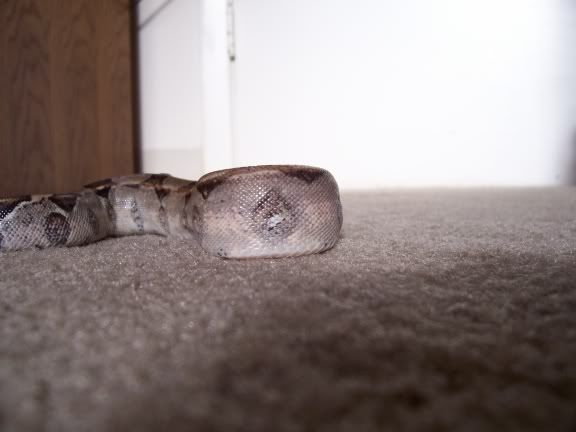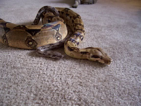 Sev's issues with his jaw and tail really aren't all the noticeable and Lynn has assurred me that he does all the normal activities for his size, eating, defecating, slithering around so we aren't at all concerned about his future. He's just going to be a big ole spoiled boa! As long as we can retrain him to watch Michigan sports because I'm sure Lynn has the poor thing watching those awful Ohio teams LOL. :P