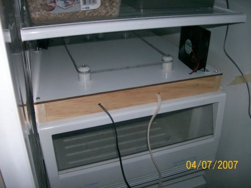 I recommend you get some 11" Flexwatt and wire it to a Helix or Herpstat Thermostat. This is going to house your eggs so don't go cheap. You can also put full water bottles in the bottom of the frig to take up space and act as a buffer for the temps.